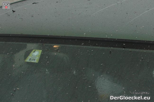 Innerhalb von 4 Minuten waren diese Ablagerungen auf unserem Fahrzeug festzustellen – solche Verunreinigungen wirken sich auf feucht/nasser Fahrbahn wie „Schmierseife“ aus